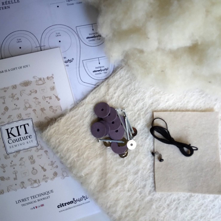 Ce Kit complet, contient tout le matériel nécessaire à la création de votre ours polaire, de A à Z (avec ou sans machine à coudre). Le livret technique illustré vous guidera pas à pas et vous livrera toutes les astuces de fabrication que vous soyez couturière avertie ou débutante.