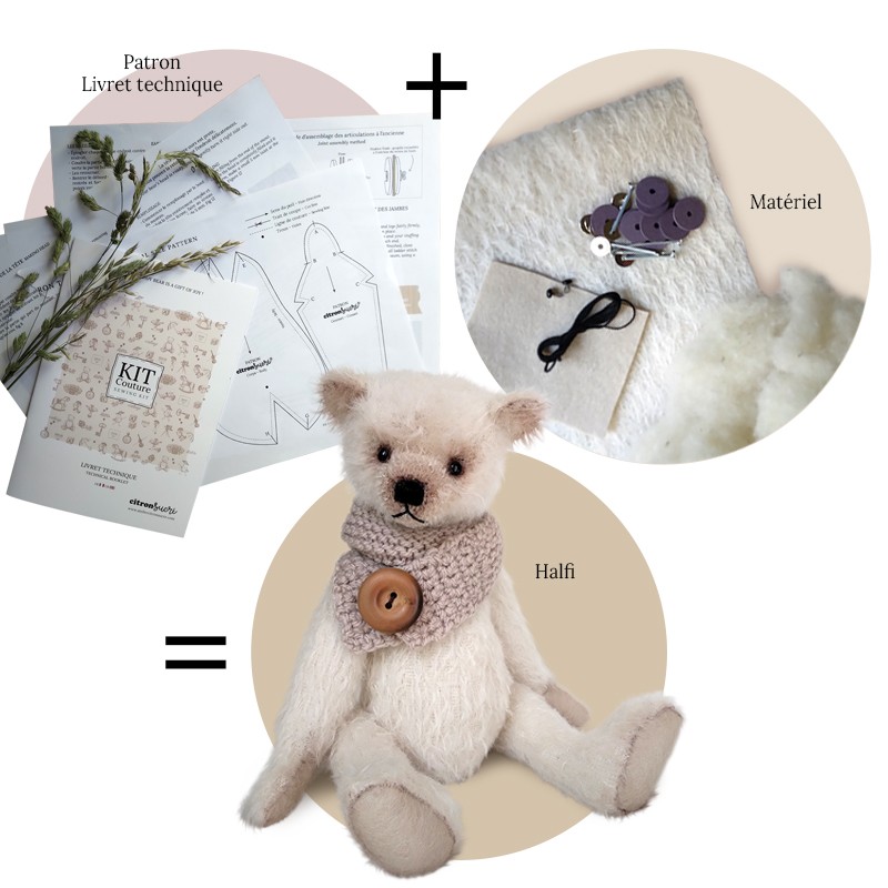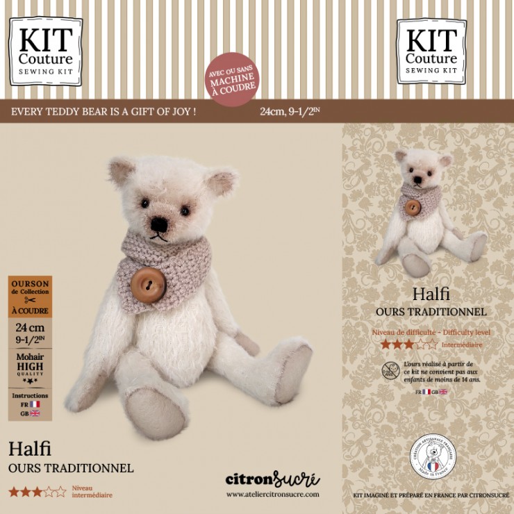 Le Kit Couture HALFI est idéal pour débuter la confection d’ourson traditionnel grâce à sa fourrure mohair à poils ras.
