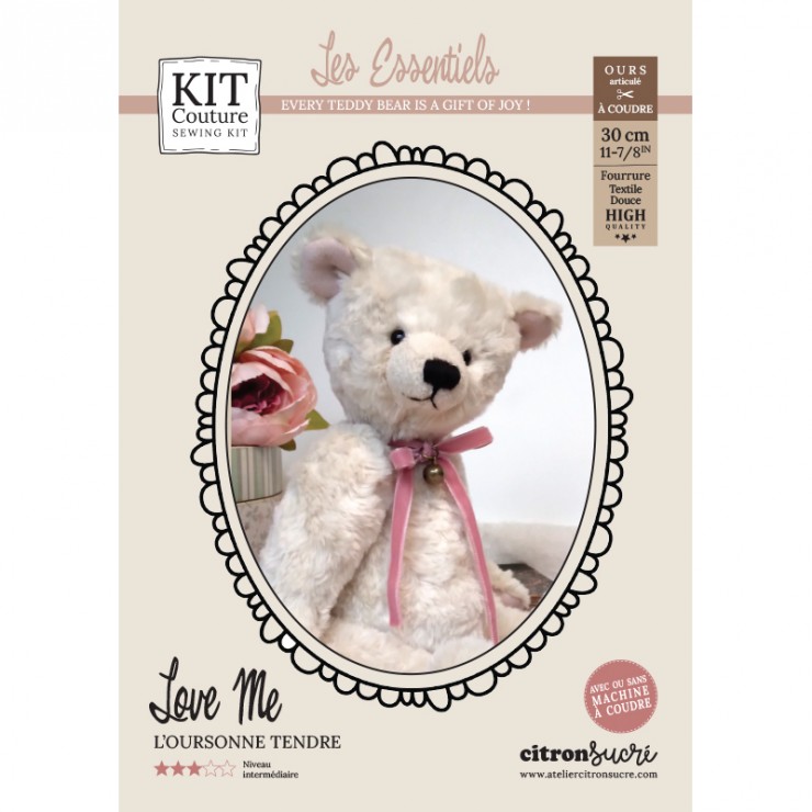 Ce kit complet contient tout le matériel nécessaire à la création de votre Oursonne, de A à Z (avec ou sans machine à coudre).
