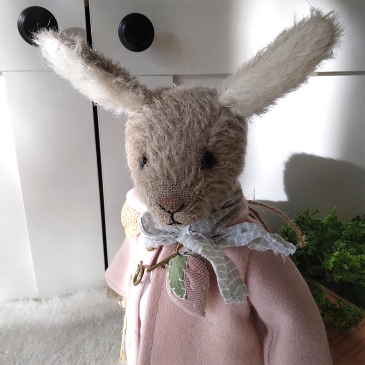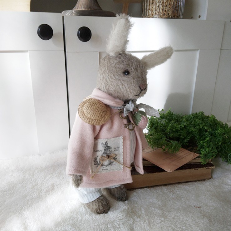 Cette lapine est fabriquée à partir de mohair Steiff, doux et soyeux dans des tons de gris, ce qui lui confère une texture agréable et un aspect réaliste. Avec ses détails minutieux et son look vintage, il représente parfaitement l’esprit rétro et poétique, faisant de lui une pièce unique pour les collectionneurs et les amoureux du style vintage.