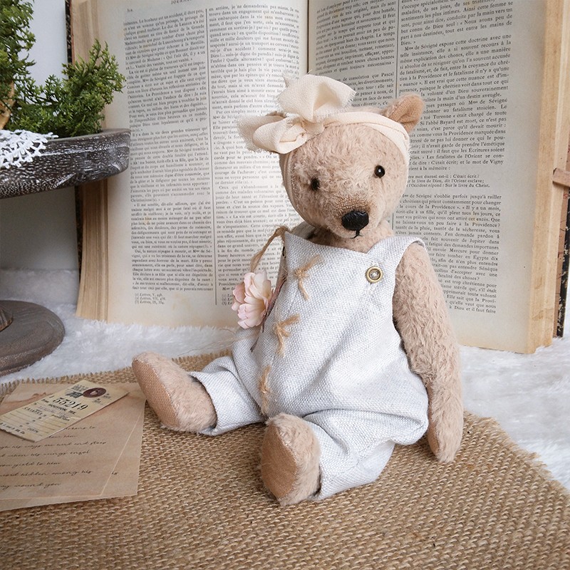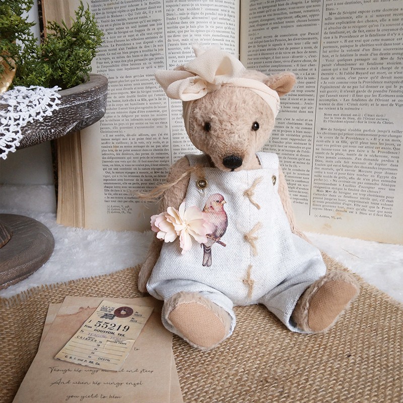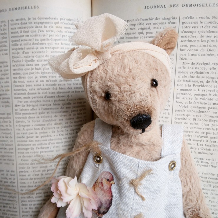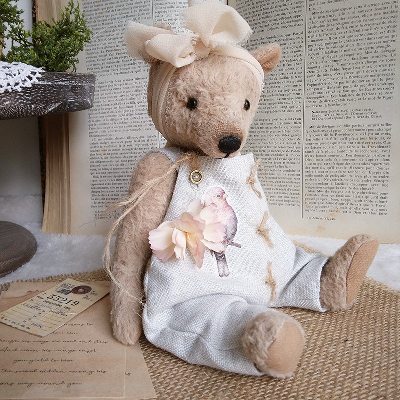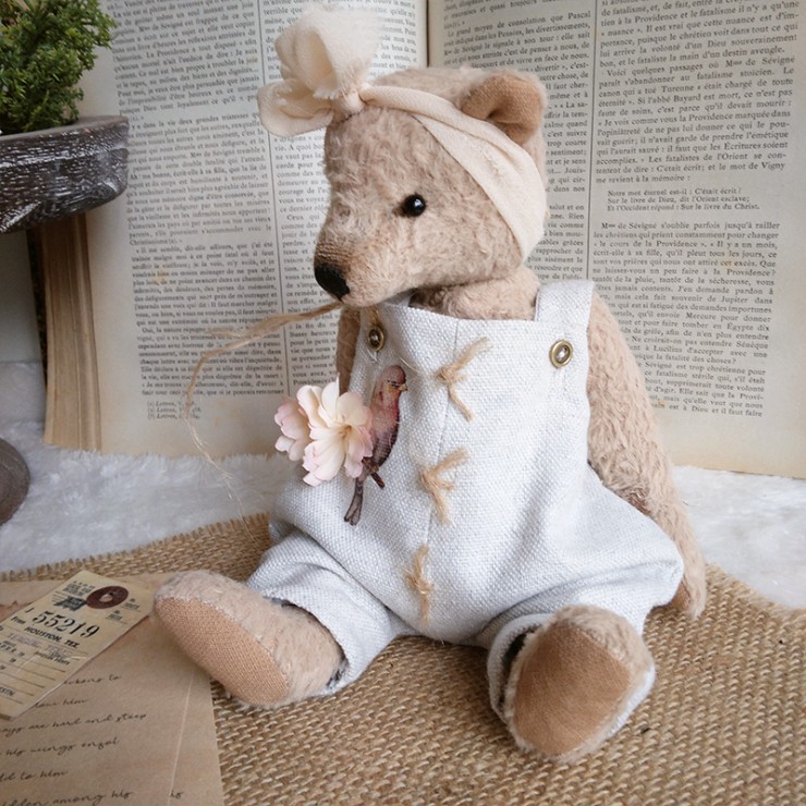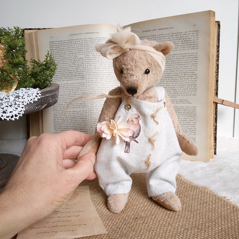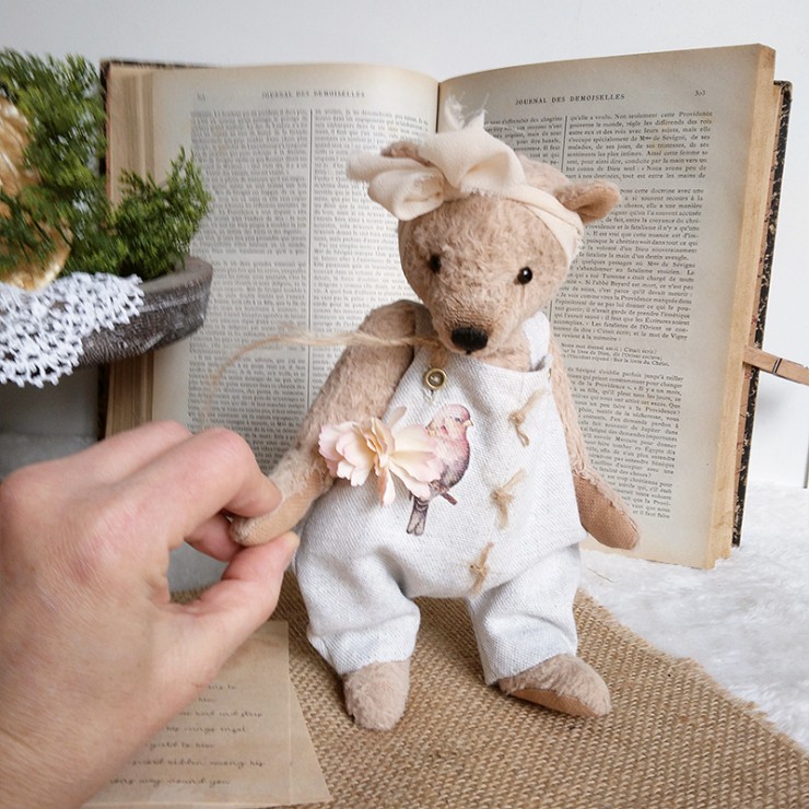 Avec son regard doux (yeux en verre) Cerise est une véritable invitation à la tendresse. Elle saura trouver une place précieuse dans une collection ou devenir un cadeau plein d’émotion. Cette oursonne est entièrement articulée grâce aux disques et goupilles. Son museau est brodé et ciré à la cire d'abeille.