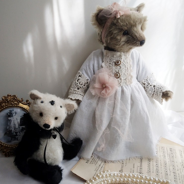 Lou est une oursonne à part, une pièce unique, au style romantique et intemporel, qui ravira les collectionneurs amoureux de créations raffinées et pleines d’âme.