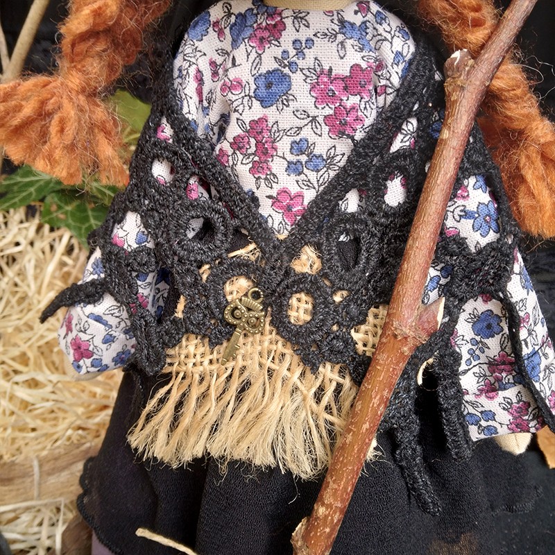 A garder près de vous ou à suspendre, Cela Tempest mettra de la bonne humeur dans votre déco ! Poupée livrée avec son balai.