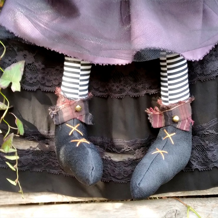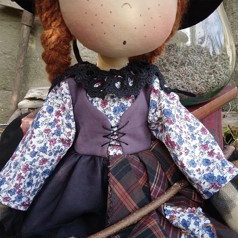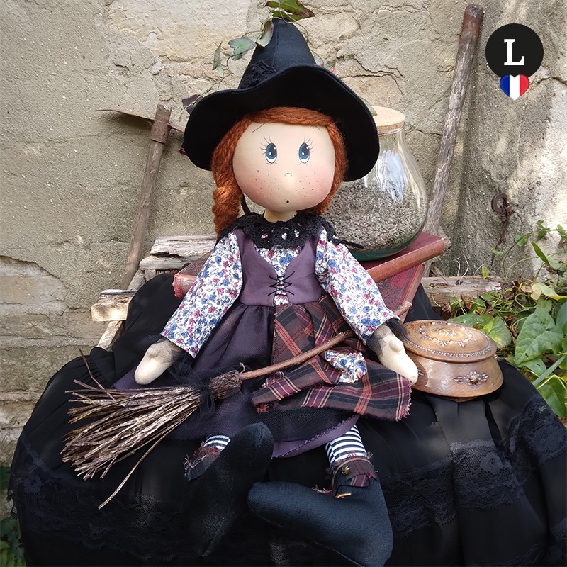 A garder près de vous ou à suspendre (un cordon est prévu à cet effet et fixé au chapeau). Arwen mettra de la bonne humeur dans votre déco ! Poupée livrée avec son balai.