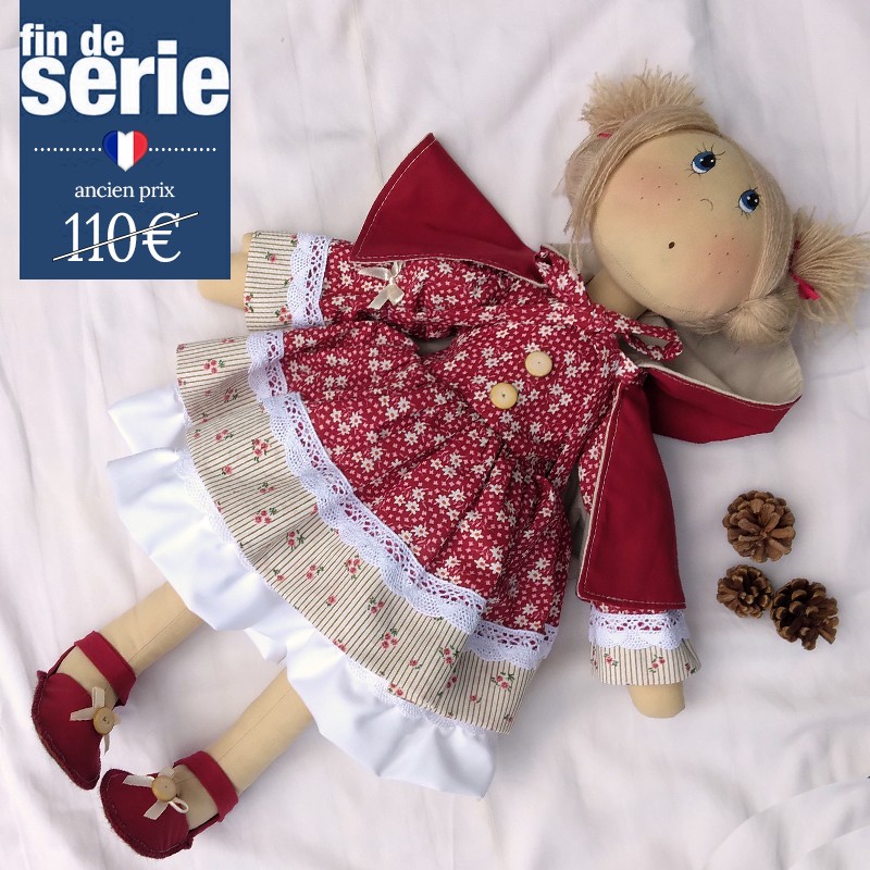 Et Gretel ? Mais non, c'est Haezel ! Cette poupée arbore une coiffure "chignon chou-chou" d'un beau blond vénitien qui fait ressortir ses beaux yeux bleus et ses joues rondes. Haezel s'en est allé au bois, cueillir des champignons avec une robe fleurie, sur un jupon tout mignon et sa jolie cape à capuche rouge assortie à de merveilleuses petites chaussures. Chuuuut ! Marchons sur la pointe des pieds...
