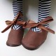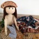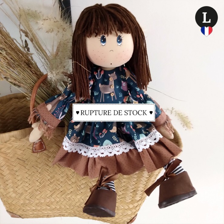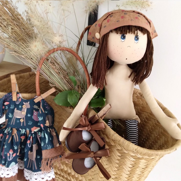 C'est bientôt la saison des châtaignes et des noisettes, et le moment pour Clara, d'enfiler de jolis vêtements aux couleurs d'automne ! Cette jolie poupée porte pour l'occasion une robe imprimée "faune des bois", délicatement ornée de dentelle et d'un volant couleur châtaigne. Elle se ferme au dos par un bouton-pression. Clara ne sort jamais sans son fichu fleuri, assorti ! Ses petites sandales mettent en valeur des collants rayés... pour le fun ! Clara attend sa future maman pour se mettre au chaud, au fond du canapé, et se faire câliner !!