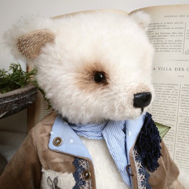 Price €140.00Ernest est un ourson tout doux, de 36 cm. Il porte de ravissants vêtements aux couleurs de l'automne. Sa veste en velours noisette, est doublée d'un joli coton fleuri. Elle se ferme entièrement avec 4 boutons. Son cache col, en tricot tissé permettra à Ernest d'affronter le froid cet hiver ! Un grelot accroché à la boutonnière tintine gentiment. Cet ourson possède deux yeux noirs en verre et est confectionné dans un mohair très doux (Steiff Schulte), de couleur beige cendré. Son museau est brodé et lustré à la cire d'abeilles. Livré avec un certificat d'authenticité.