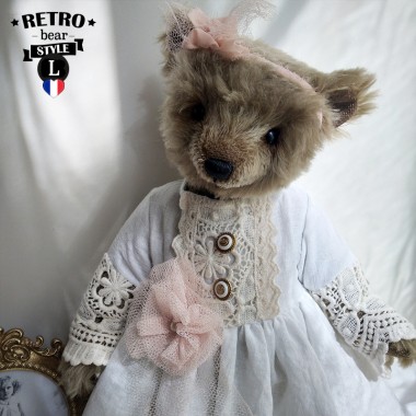 Price €200.00Avec son allure débonnaire, ours Boston a tout pour plaire ! Ce charmant nounours mesure 38 cm environ, il est confectionné main dans un joli mohair Steiff Schulte couleur sable. Boston porte un gros nœud papillon en lainage pour un style délicieusement rétro, et un chandail écru tricoté main, fermé par 2 boutons en bois. Boston porte sa clé au cou, au bout d'une chaine. La clé du coffre de la banque peut-être !! Cet ours est rembourré avec des copeaux de bois et des billes minérales pour son lestage, ses jolis yeux mordorés sont en verre, le museau brodé et lustré à la cire d'abeilles. Boston est une pièce unique ! Livré avec son certificat d'authenticité.