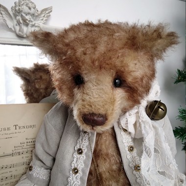 Price €180.00Ernest est un ourson tout doux, de 36 cm. Il porte de ravissants vêtements aux couleurs de l'automne. Sa veste en velours noisette, est doublée d'un joli coton fleuri. Elle se ferme entièrement avec 4 boutons. Son cache col, en tricot tissé permettra à Ernest d'affronter le froid cet hiver ! Un grelot accroché à la boutonnière tintine gentiment. Cet ourson possède deux yeux noirs en verre et est confectionné dans un mohair très doux (Steiff Schulte), de couleur beige cendré. Son museau est brodé et lustré à la cire d'abeilles. Livré avec un certificat d'authenticité.